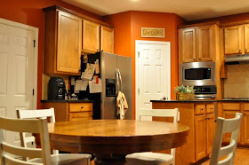 I am probably making too big of a deal out of my before and after kitchen - because really all I have done so far is change out the table and paint.  But it's a big deal to me!  :o)  This is something I have been wanting to do for awhile, and I know it will be a work in progress.  I can't do it all in a weekend, right?  (As much as I would like to!)  So, I am still working on it, and it's not quite photo-ready yet.  I wanted to work on some things in there today, but it's my hubby's birthday, and I need to get ready for a family gathering at our place tonight.